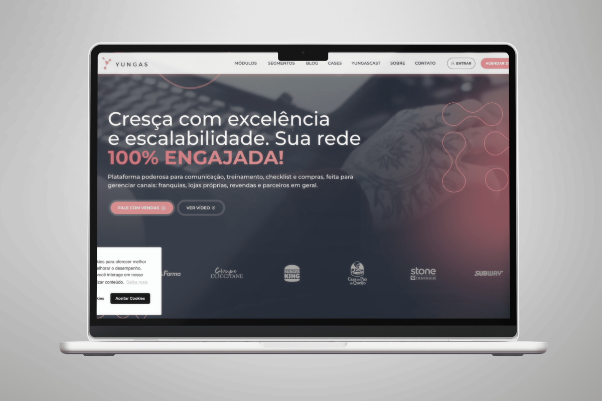 Mesmo com um produto sólido e boa reputação no mercado, o site da Yungas não refletia todo o valor que a marca já entregava. Faltava clareza na proposta, fluidez na navegação e uma apresentação que comunicasse o impacto da solução com mais autoridade. A empresa precisava de um novo site capaz de gerar mais leads e funcionar como uma ferramenta comercial estratégica para o time de vendas.